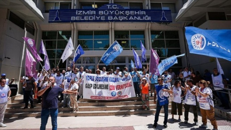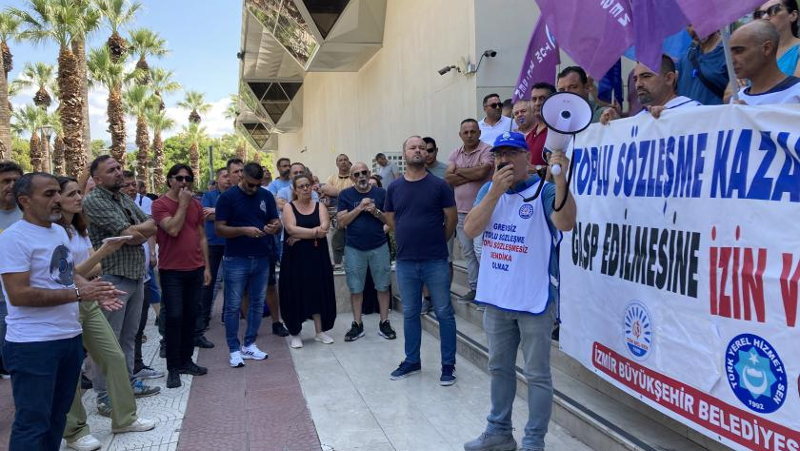 Kamu emekçileri CHP'li İzBB yönetiminin baskı ve tehditlerine rağmen eylemde İZMİR 26 Temmuz 2024 Cuma
