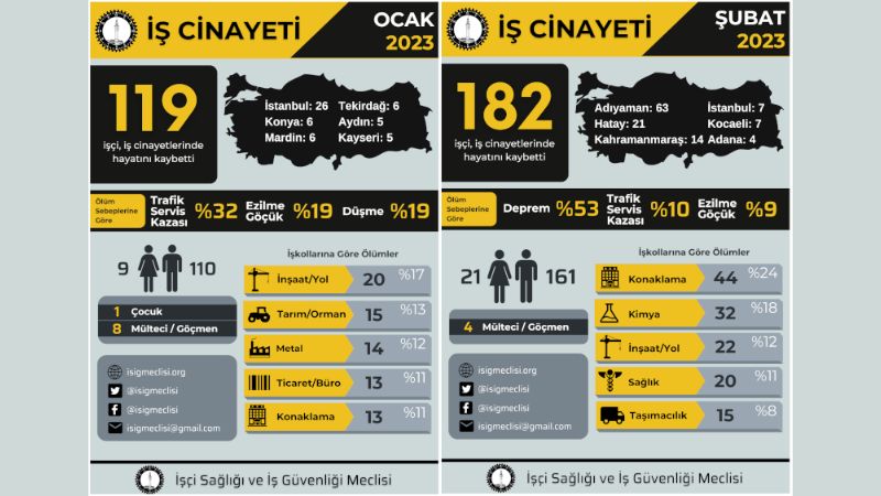 2023'ün ilk iki ayında en az 301 işçi çalışırken hayatını kaybetti