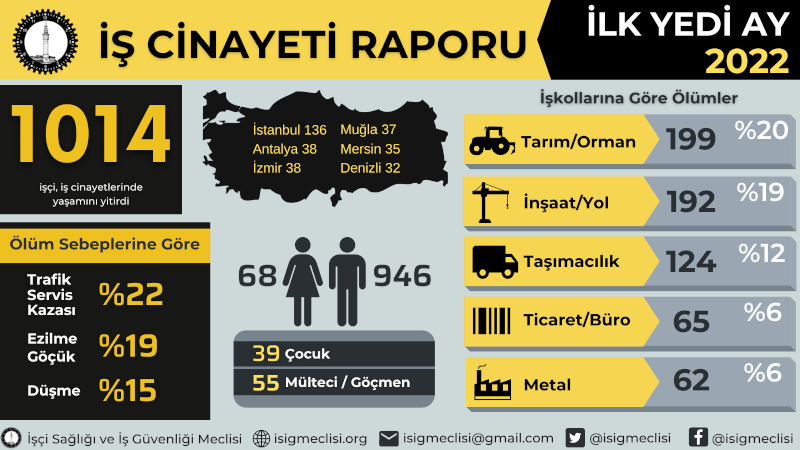 İSİG: İlk yedi ayda en az 1014, temmuzda 169 işçi hayatını kaybetti HABER MERKEZİ 9 Ağustos 2022 Salı