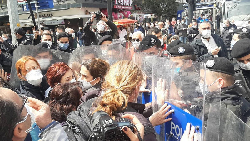 Sağlık emekçilerinin 'ölümleri durdurun' yürüyüşüne polis saldırısı İSTANBUL - ETHA 15 Nisan 2021 Perşembe