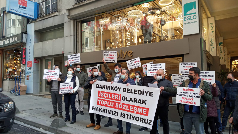 Bakırköy Belediyesi işçileri eylemlerini CHP Genel Merkezi önüne taşıyor İSTANBUL 11 Mart 2021 Perşembe