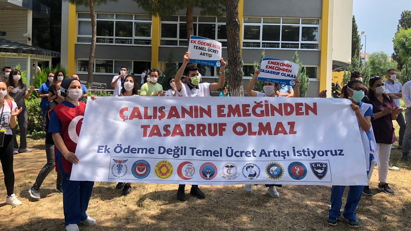 BİMEKS işçileri Özyeğin ve Bahçeşehir Üniversiteleri önünde eylem yaptı İSTANBUL 22 Haziran 2020 Pazartesi
