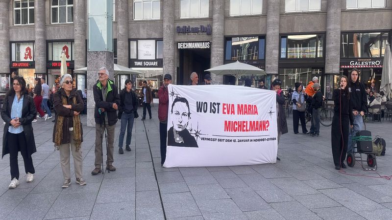 Eva ve Ahmet Nerede İnisiyatifi'nin çağrısıyla Almanya'nın Köln kentinde merkez tren istasyonunun önünde bu hafta da eylem yapıldı.