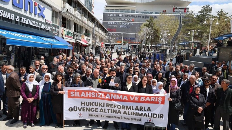İnsan Hakları Derneği (İHD) tüm şube ve temsilciliklerinde eş zamanlı olarak mevcut sürece ilişkin açıklama gerçekleştirdi. Açıklamalarda, "Silahsızlanma ve barış hukuki reformlarla güvence altına alınmalıdır" pankartı açıldı.