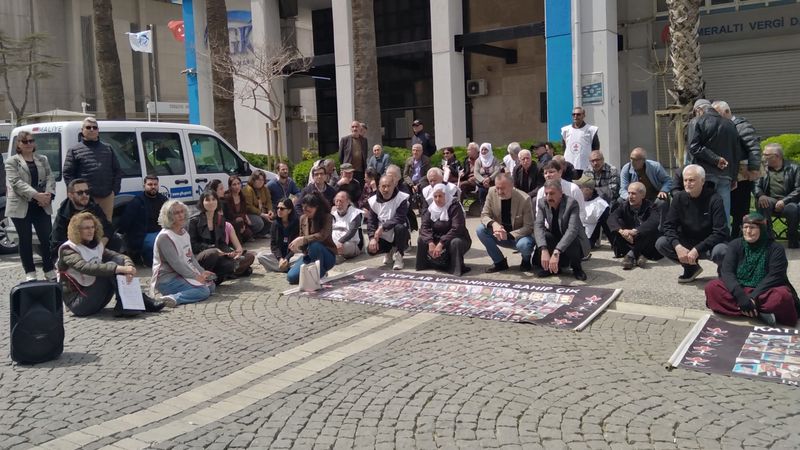 İnsan Hakları Derneği İzmir Şubesi, gözaltında kaybedilenlerin akıbetinin açıklanması için Konak Eski Sümerbank'ın önünde bir araya geldi.